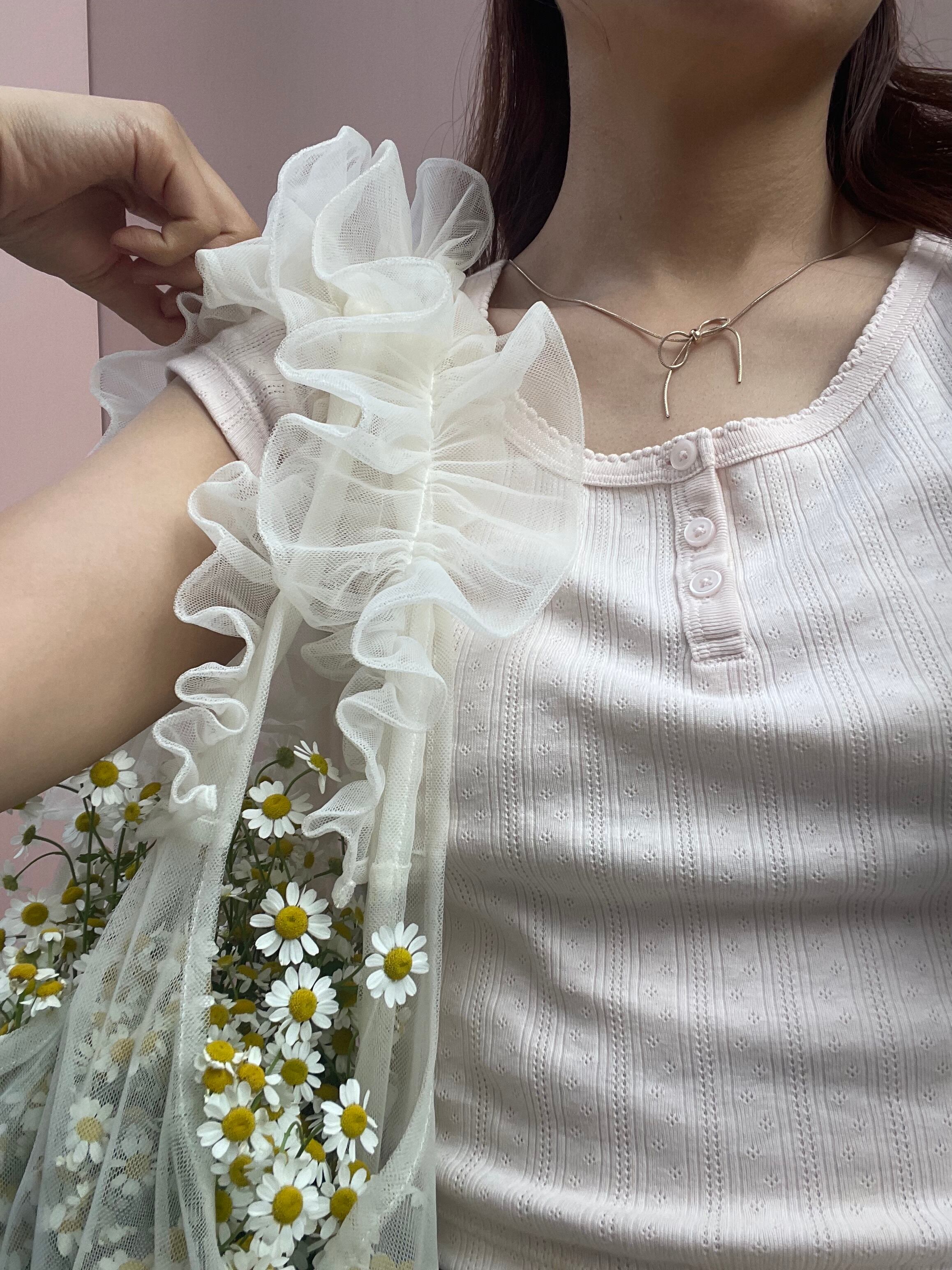 持ち手・底部分にはオーガンジー+チュールの二重に加えて、