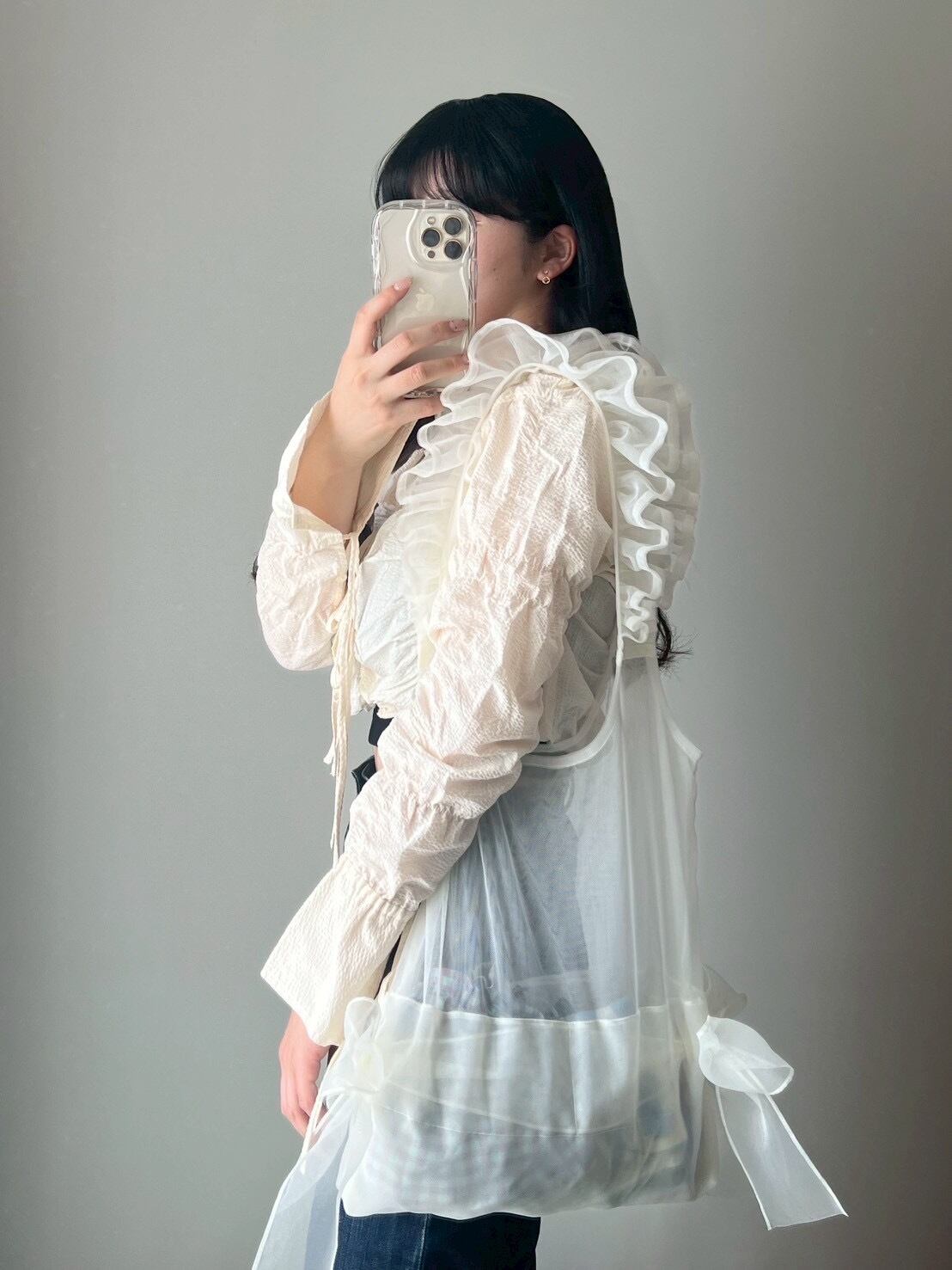 持ち手・底部分にはオーガンジー+チュールの二重に加えて、